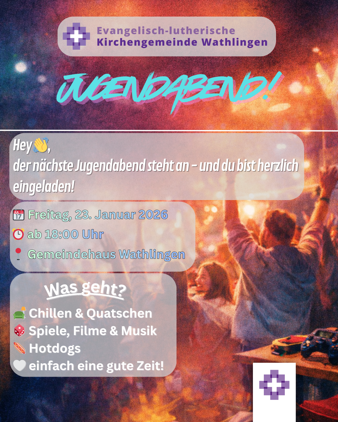 Der Jugendabend ist ein offenes Angebot der Konfi-Arbeit und wird von den Teamern der St. Marien Kirchengemeinde Wathlingen organisiert. โช๏ธ