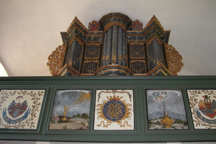 Alle Pfeifen sind klingend mit Ausnahme der Pfeifen in den beiden unmittelbar über dem Schriftzug „Anno 1707“ befindlichen Feldern. Da man in der Barockzeit großen Wert auf einen symmetrischen Anblick legte, sind diese beiden stummen Felder eingebaut worden.