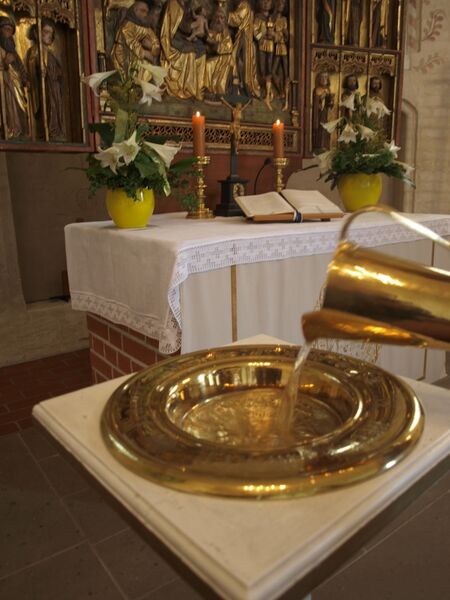 Taufen finden an ausgewählten Sonntagen im Gottesdienst statt. Melden Sie sich gerne über das Pfarrbüro an.
